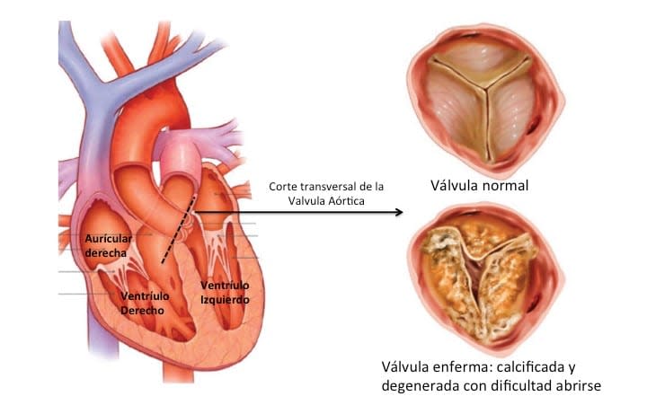 En los pacientes con estenosis aórtica la sangre no sale adecuadamente del corazón, la válvula aórtica se bloquea y no se puede abrir adecuadamente, el orificio de salida de la sangre es muy pequeño por lo tanto: