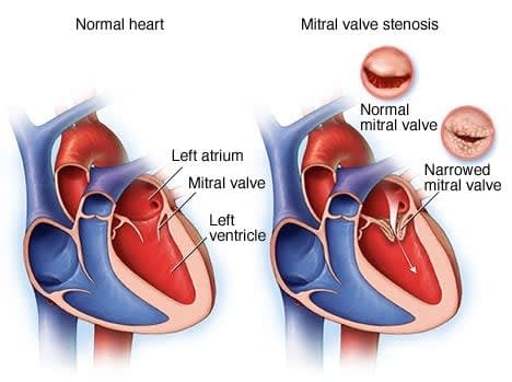 La estenosis mitral es un estrechamiento de la llamada válvula mitral del corazón. Este defecto, ocasiona que la válvula mitral no abra correctamente, lo que bloquea el flujo de sangre hacia el ventrículo izquierdo (cavidad principal de bombeo del corazón). En otras ocasiones la válvula no se cierra bien y se produce insuficiencia mitral.